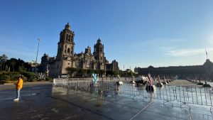 峠の方角は万年雪で氷河を頂く雪山が見える