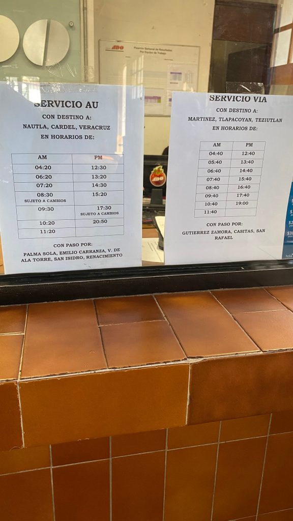 水曜日のバスでパパントラに向かう。今回チケットを買った ADO(アデオと読む)は主にメキシコシティより東方面にメキシコ国内の主要都市を結ぶ路線を持つ一等バスを運行するバス会社だ。