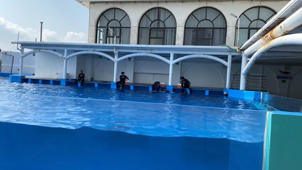 訓練中のイルカたち