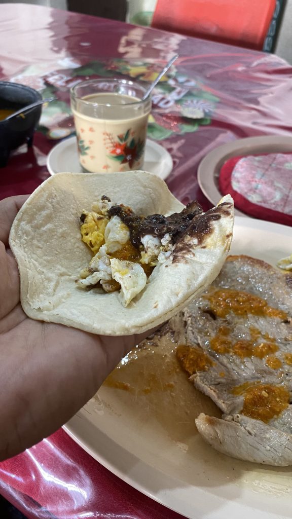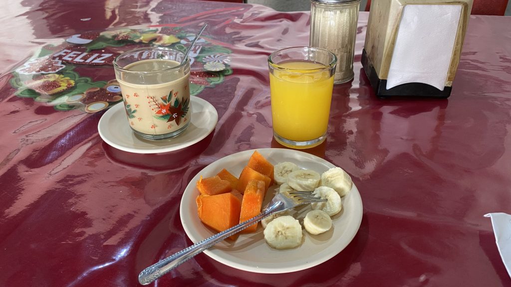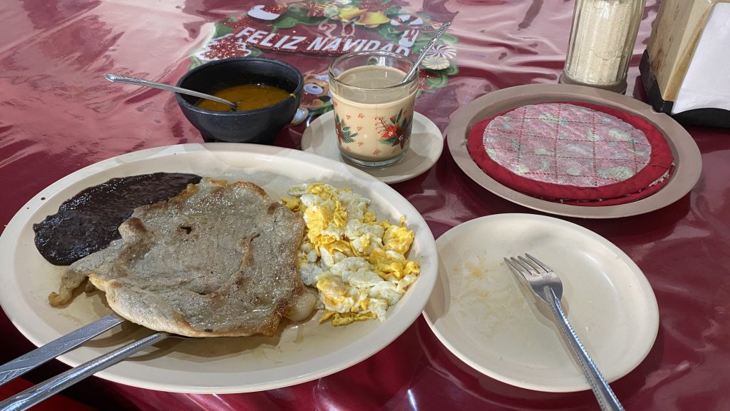 まだ12時前だったため、マクドナルドの朝マックみたく、朝食メニューしか頼めなかったので、選択肢の中からビステクアサド(メキシコ風ステーキ)を頼む。